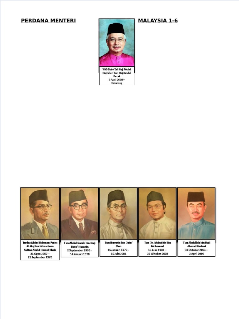 Perdana Menteri Malaysia 1-6 : Foto oleh luqman hakim zubir untuk nstp.