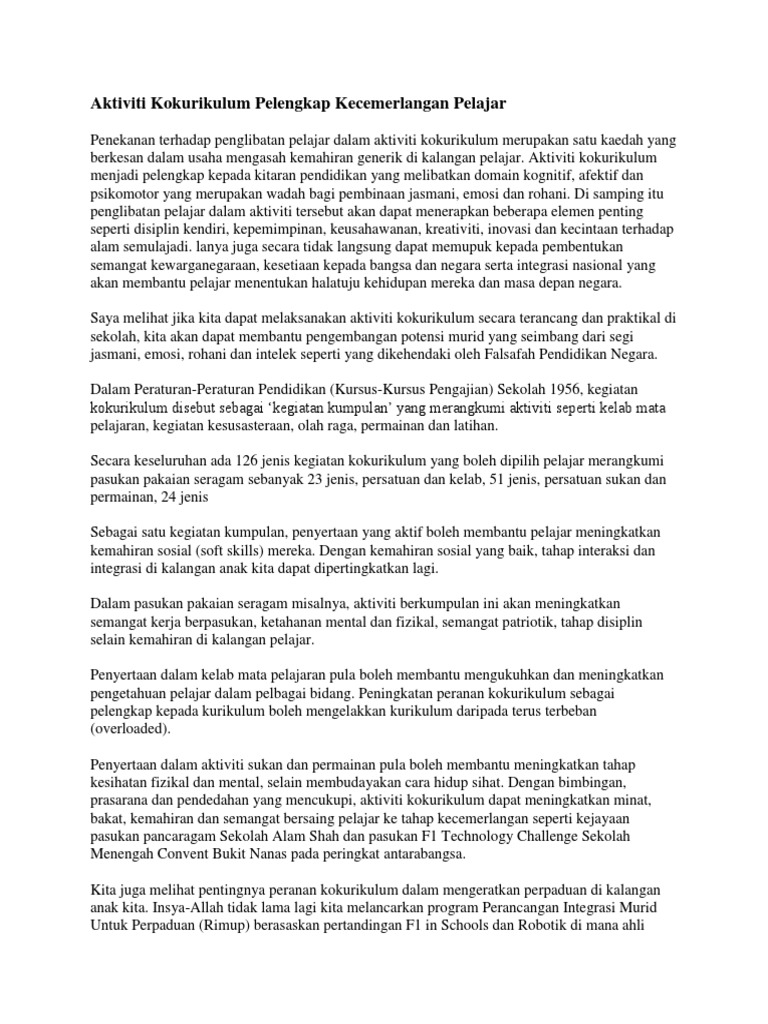 Maybe you would like to learn more about one of these? Contoh aktiviti kokurikulum sekolah rendah. Check spelling or type a new query. We did not find results for: