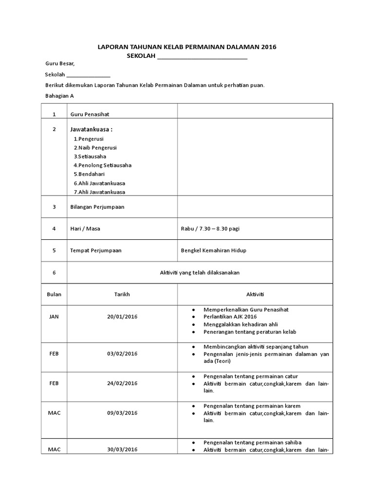 Menyelaras latihan rumah sukan setiap minggu. Sehari sebelum temasya sukan semua warga sekolah sibuk membuat persiapan. Anda dikehendaki menyediakan laporan tentang temasya sukan tahunan yang dijalankan di sekolah kamu. Contoh laporan hari sukan sekolah contoh hasil kajian kerja kursus geografi tingkatan 1 contoh karangan cara cara menjaga alam sekitar contoh buku log pengakap contoh karangan hari sukan negara contoh jenayah kanak kanak contoh cadangan jangka pendek dan jangka panjang kelab futsal contoh isi borang g dan h contoh karangan kepentingan teknologi dalam kehidupan seharian Atas kesedaran inilah, maka sekolah menengah kebangsaan paya rumput akan mengadakan satu acara sukan tahunan iaitu kejohanan olahraga tahunan